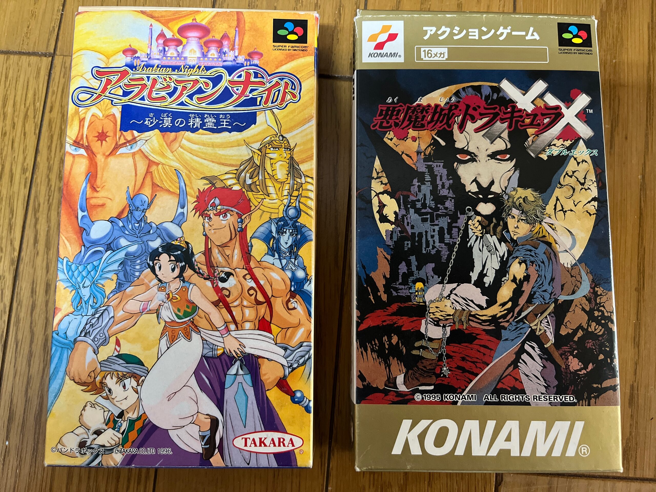 スーパーファミコンソフトの悪魔城ドラキュラXX とアラビアンナイト。